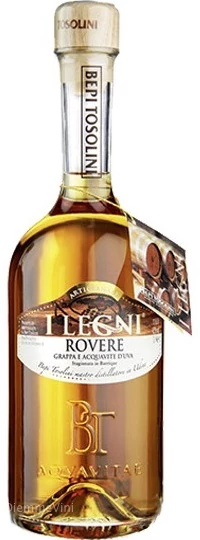 Egy nemes grappa, az I Legni Rovere Barrique, amely több mint egy évet érlelődik tölgyfahordókban. A törkölyt a friss "Tosolini-módszer" szerint desztillálják a gyümölcs egyedi illatainak és ízeinek megőrzése érdekében. Ízek és illatok finomított kombinációja. A fa borostyánsárga színéből, amelyben a grappa édes csokoládé, dió és vanília jegyeket vesz fel. Intenzív élmény a szájban, bársonyos és kitartó.