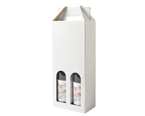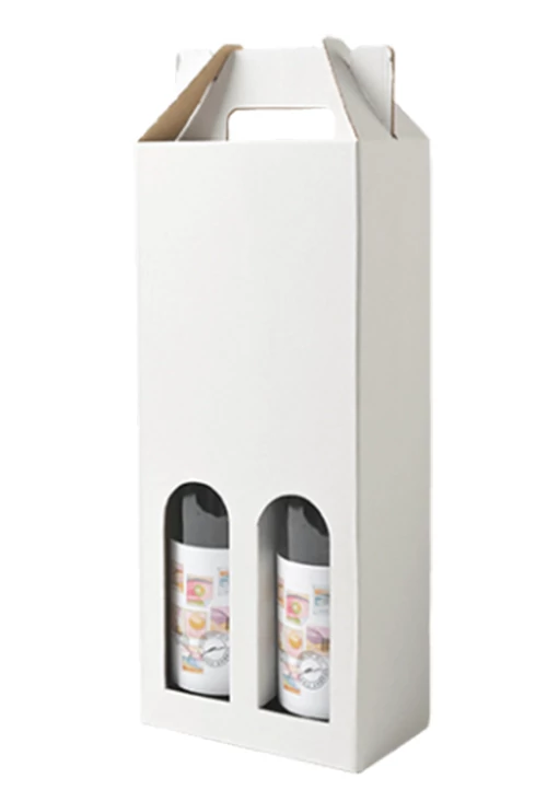 Boros doboz 2 üvegnek, elegáns csomagolási megoldás. Standard fehér színű boros doboz. Vékony 3 rétegű hullámlemezből készül, a doboz elején kivágás található.