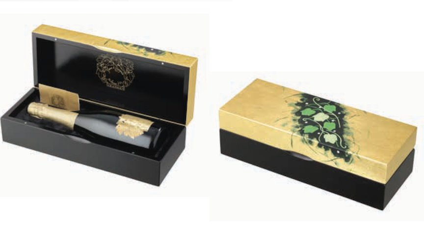 Minden egyes palack gravírozott plakettel van ellátva, amelyet a neves Macheret öntöde készít. Az egyedi megrendelésre készített palackokat fekete lakkozott fadobozban szállítják, amely méltó módon egészíti ki e ritka pezsgők történelmét.